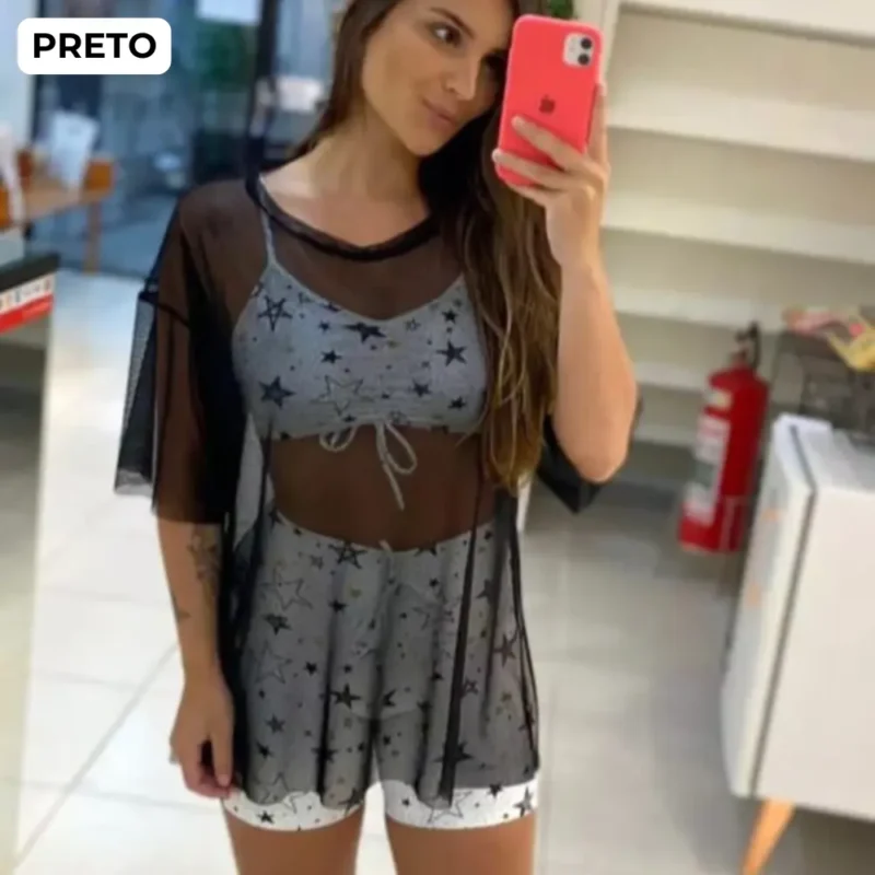 Blusão de tule leve e sofisticado, perfeito para sobreposições elegantes. Um toque moderno e estiloso para qualquer look!